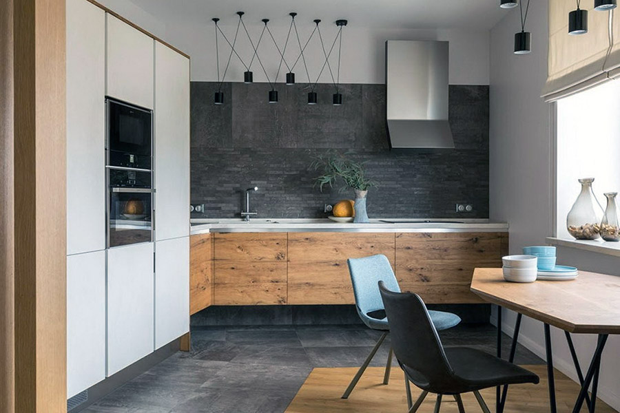 Рассмотрим популярные стили интерьера кухонь без верхних шкафов в 2026 году.