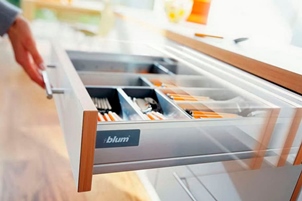 Всі ящики працюють легко, м'яко і безшумно. Секрет у використанні оригінальної австрійської фурнітури Blum.